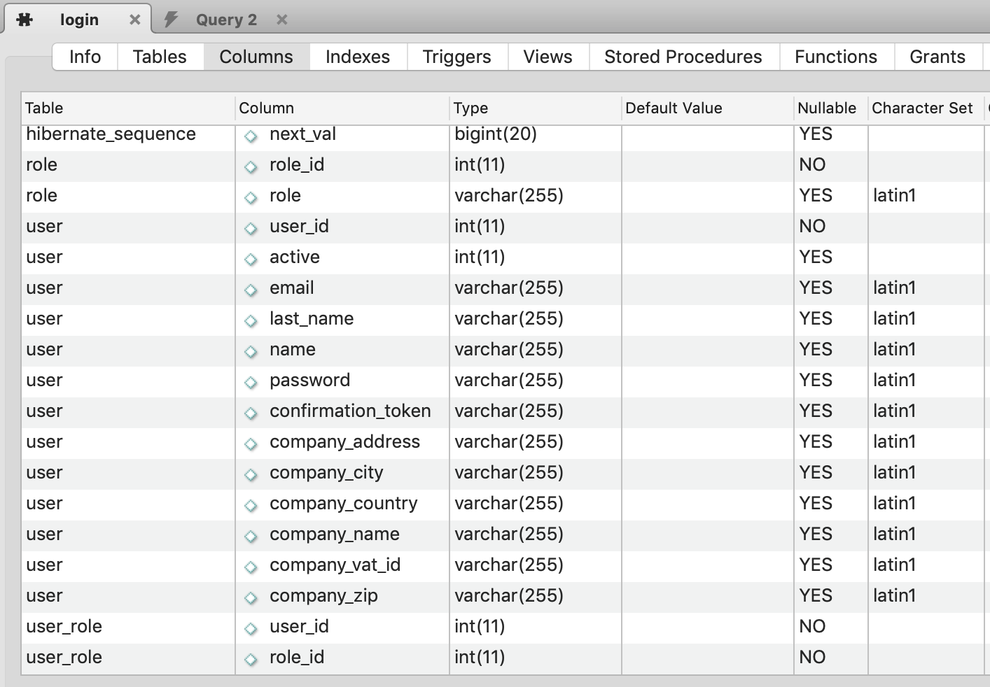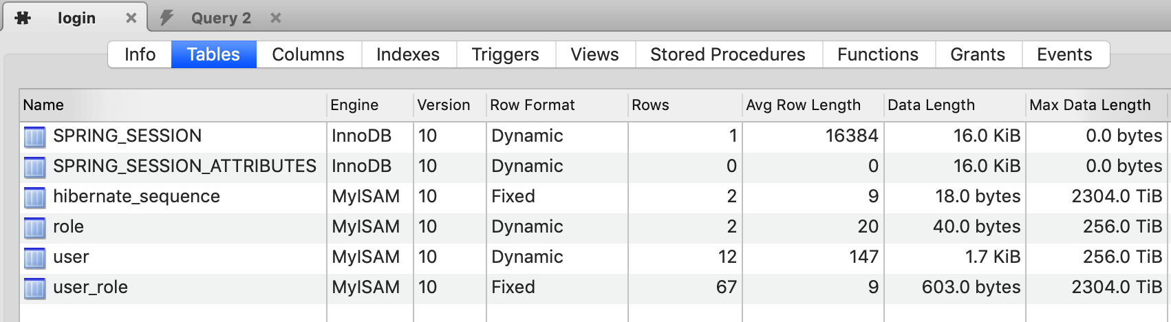 2) Database Table Details-I